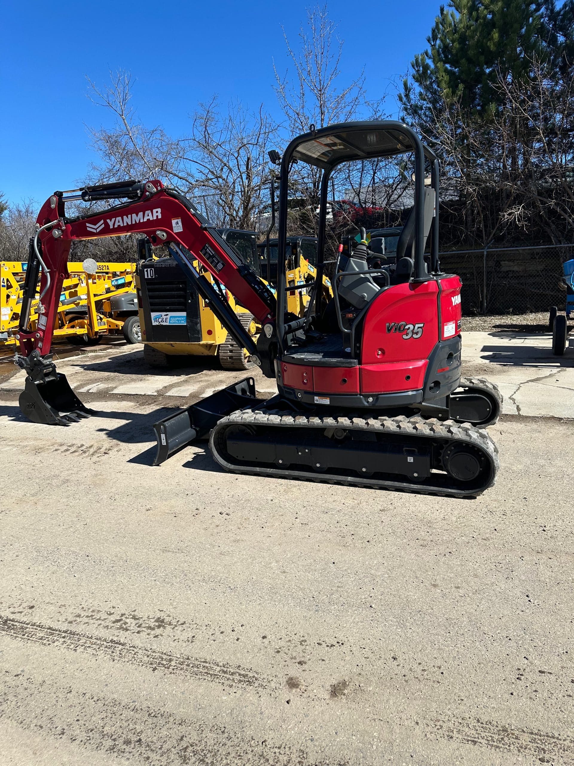 Rent a Yanmar VIO35 Mini Excavator 6A. This is the perfect rental machine for digging trenches, footings, installing septic fields and tanks, trenching along foundation walls for egress window installation or resealing foundation walls and more. It’s versatility makes this a top product among our earthmoving equipment. Weighing 7800lbs and boasting an 11′ dig depth, with a standard 18″ bucket and a standard backfill blade makes this compact excavator a can’t miss rental product.